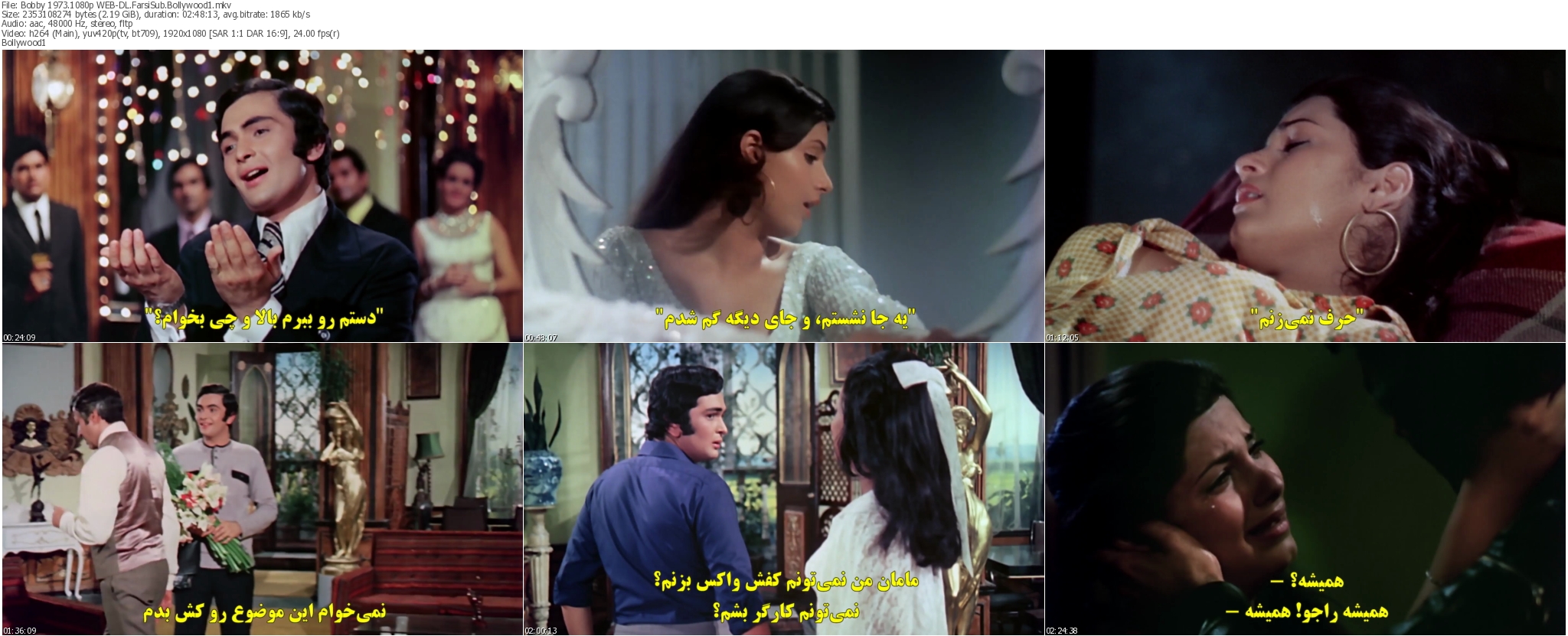 بابی Bobby 1973 - فیلمی درام و عاشقانه و کمدی و موزیکال از سینمای بالیوود هند با بازی ریشی کاپور و دیمپل کاپادیا و پران سیکاند و ارونا ایرانی و پریم چوپرا و فریدا جلال با کارگردانی راج کاپور ، فیلمی که توسط پدر ریشی کاپور یعنی راج کارگردانی شده و تبدیل به یکی از ماندگار ترین اثار سینمای قدیم هند با داستانی عاشقانه و جالب و اهنگ های خاطره انگیز ان دوران شده ، دوست داران سینمای قدیم هند تماشا کنند. خلاصه داستان : پسری به نام راجا، بعد از سالها تحصیل در مدرسه شبانه روزی، به خونه برمیگرده، در مهمانی جشن تولدش با دختر غریبهای آشنا میشه و سعی میکنه اونو بشناسه و کم کم به اون علاقهمند میشه .... زیرنویس فارسی چسبیده اختصاصی بالیوود وان اضافه شد / مترجم : کاپیتان آی اُ