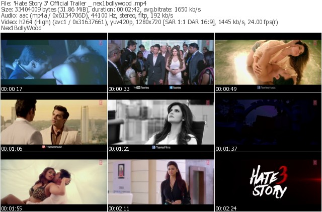تریلر رسمی فیلم Hate Story 3 با بازی کاران سینگ و زرینا خان و به کارگردانی ویشال پاندیا .