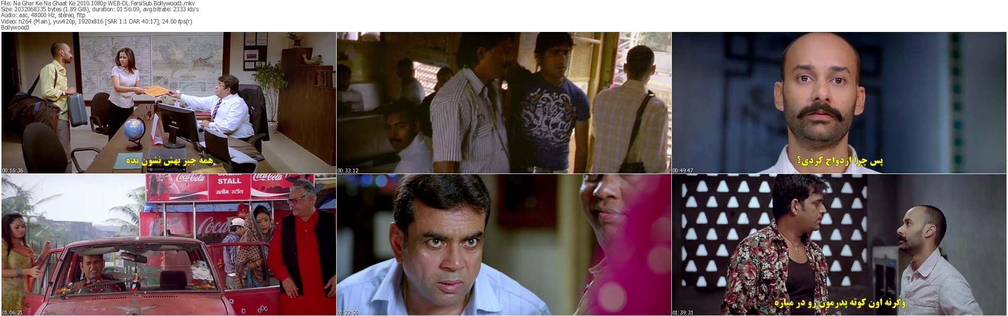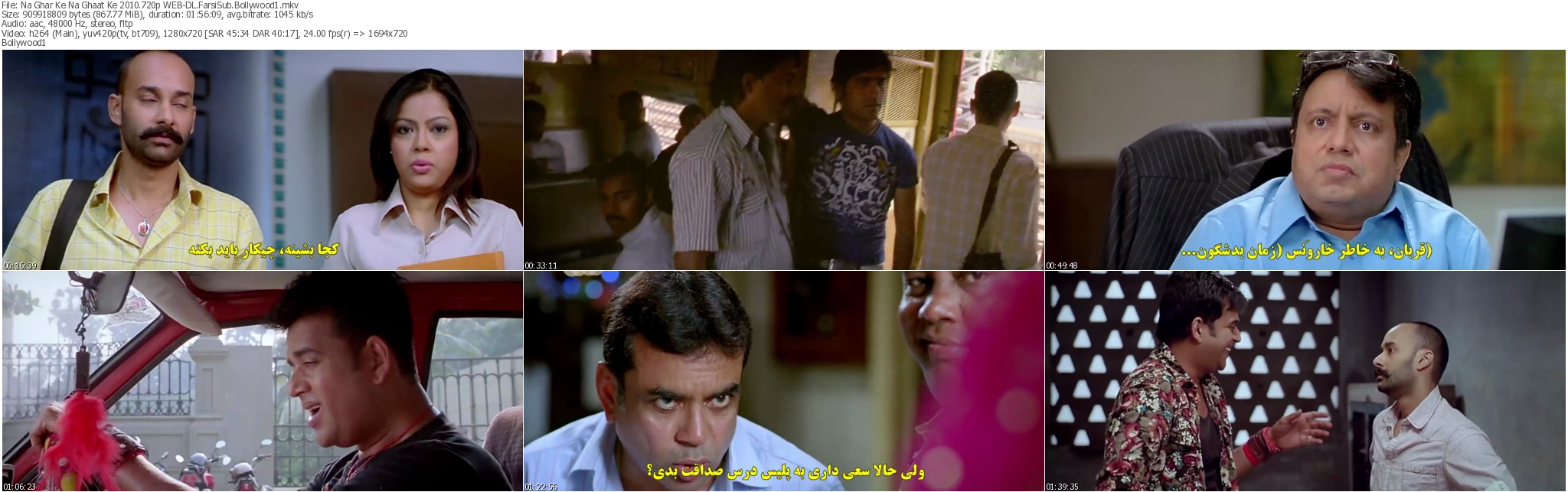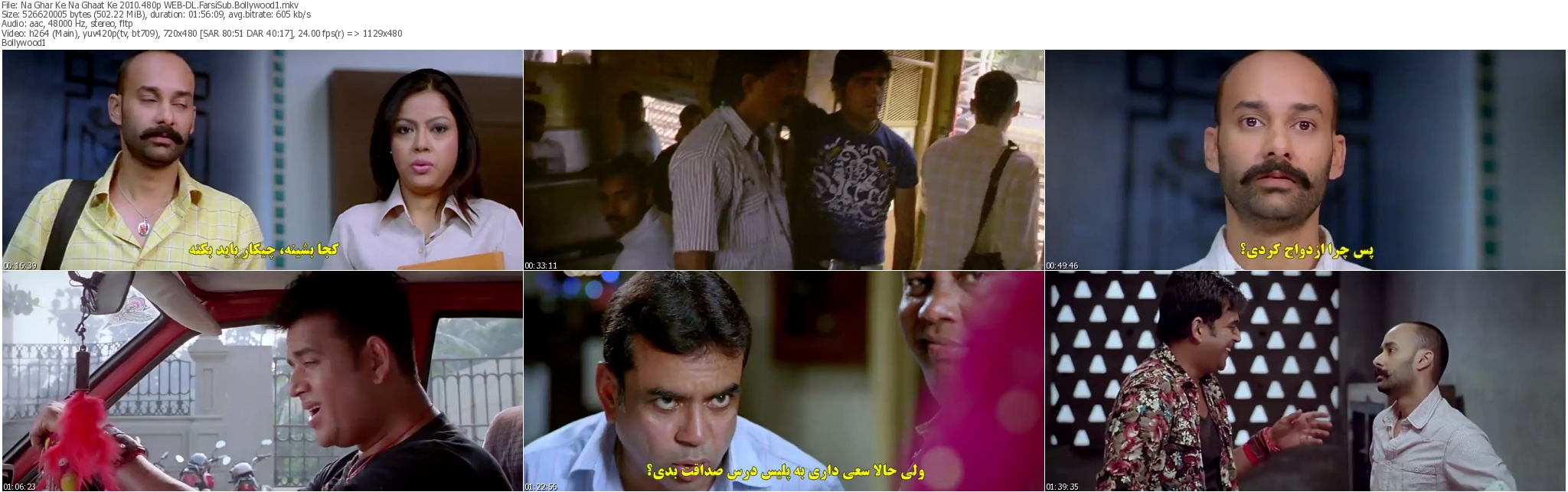 نه مال خونست نه مال بیرون _ Na Ghar Ke Na Ghaat Ke 2010 - فیلمی کمدی و دارم از سینمای بالیوود هند با بازی ام پوری و پارش راوال و نینا گوپتا و راوی کیشان با کارگردانی راهول اگروال ، فیلمی با بودجه پایین که برخلاف انتظار اثر مورد قبول و سرگرم کننده ای از اب درامده با یک تیم بازیگری با تجربه که فقط هنرنمایشان ارزش تماشای فیلم را بالا میبرد. خلاصه داستان : داستان پسر ساده ای دوکی ناندان تریپاتی که در روستای پالانهار زندگی میکند و برای کار کردن به شهر بمبئی می اید و چون سبک زندگی شهری را خوب نمیشناسد دچار مشکلات زیادی میشود و تصمیم میگیرد که به روستا برگردد و ازدواج کند و حالا که دوباره به شهر می اید ماجرا تغییر میکند و...زیرنویس فارسی چسبیده اختصاصی بالیوود وان اضافه شد / مترجم : Heimoort